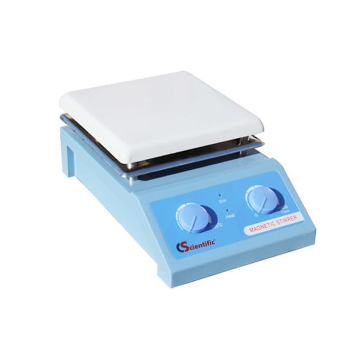 Voltaje: 220/110V Energía: 600W Velocidad: 100-2000 rpm Tamaño del plato: 190 x 190 mm Volúmen máximo: 5000 ml Temperatura máxima (superficie del plato): 380°C Ajuste: análogo Dimensiones: 300 x 210 x 126 mm Peso neto: 5 kg |